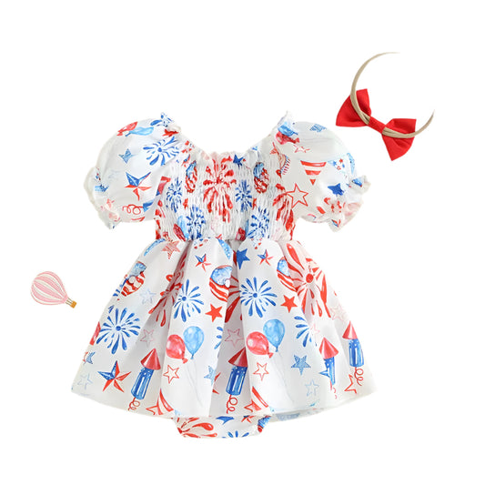 Sweet Baby Girl 4th of July Celebration Dress with Bow Headband